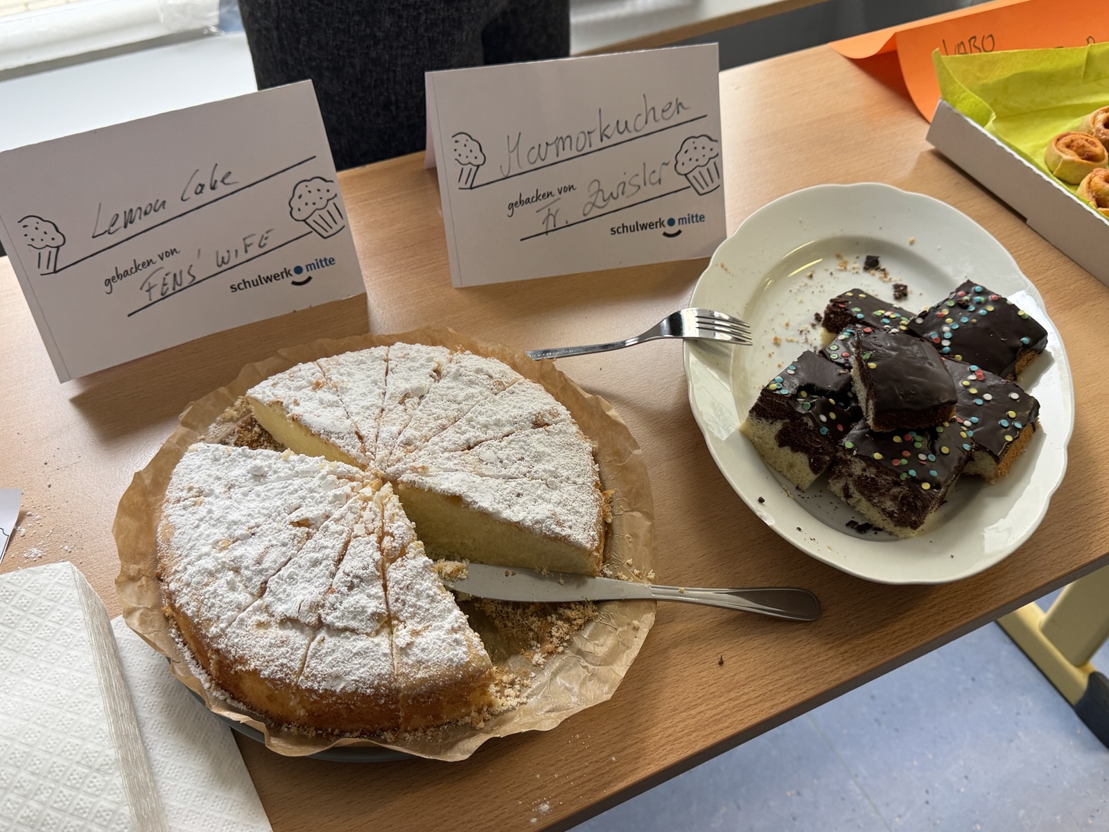 Vielen Dank an alle Lehrkräfte für die leckeren, selbstgebackenen Kuchen, Torten und Muffins. Ein ganz besonderer Dank gilt Herrn Paschen für diese einzigartige und personalisierte Torte. Alle Schülerinnen und Schüler haben nach Erhalt ihres Zeugnisses das erste Halbjahr ganz besonders lecker ausklingen lassen.